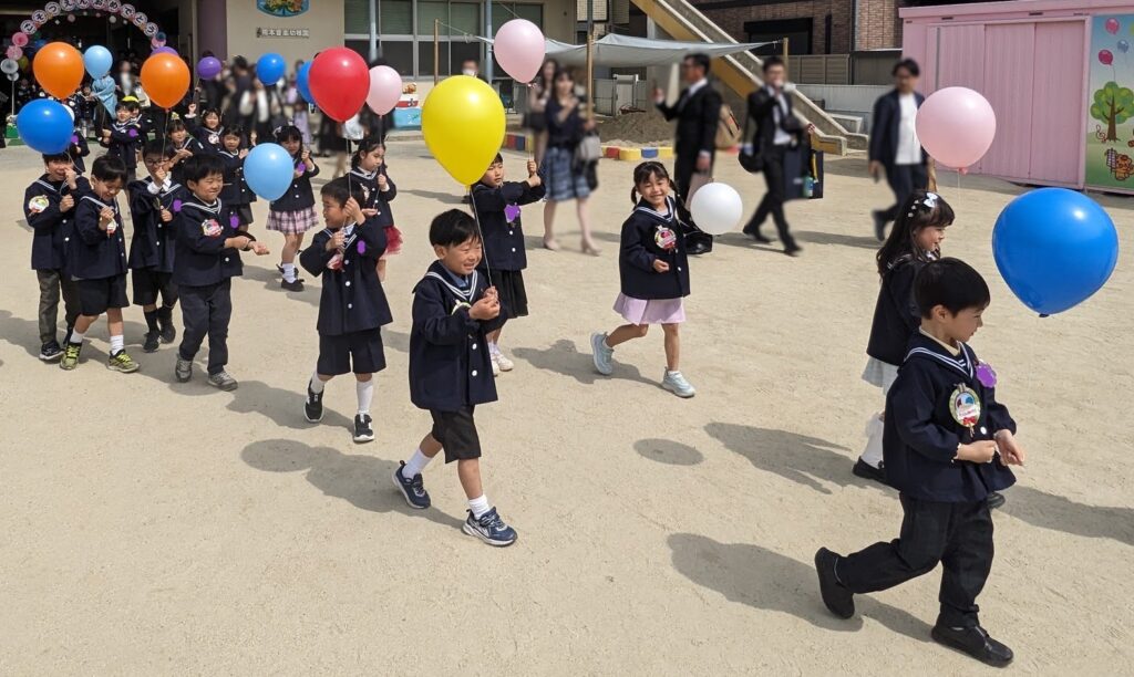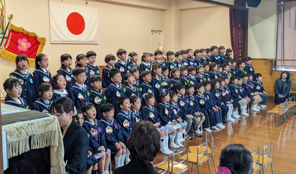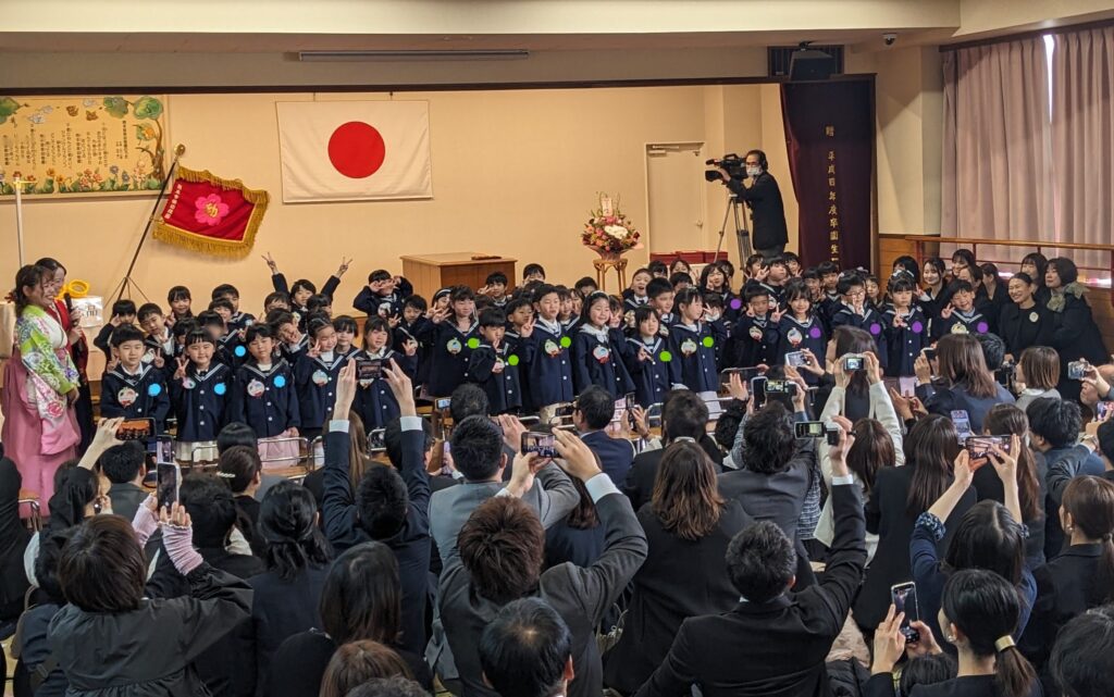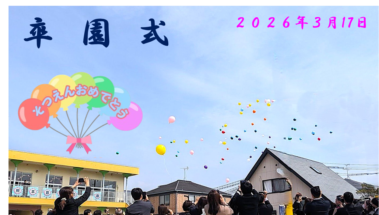 3クラス総勢67名の卒園生が、熊本音楽幼稚園を旅立ちました。卒園の言葉、卒園の歌も、子どもたちは毎日練習に取り組み、その成果がこの日実を結び、とても素敵でそして感動的な卒園式でした。卒園式後は、みんなで「風船飛ばし」をして締めくくりました。